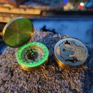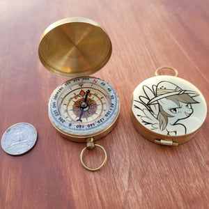 These handsome little pieces are liquid filled old fashioned style brass compasses, with glow in the dark paint on the hand and rim. They'll look cool and handy, and be marginally useful if you manage to get lost. Plus they look cool.