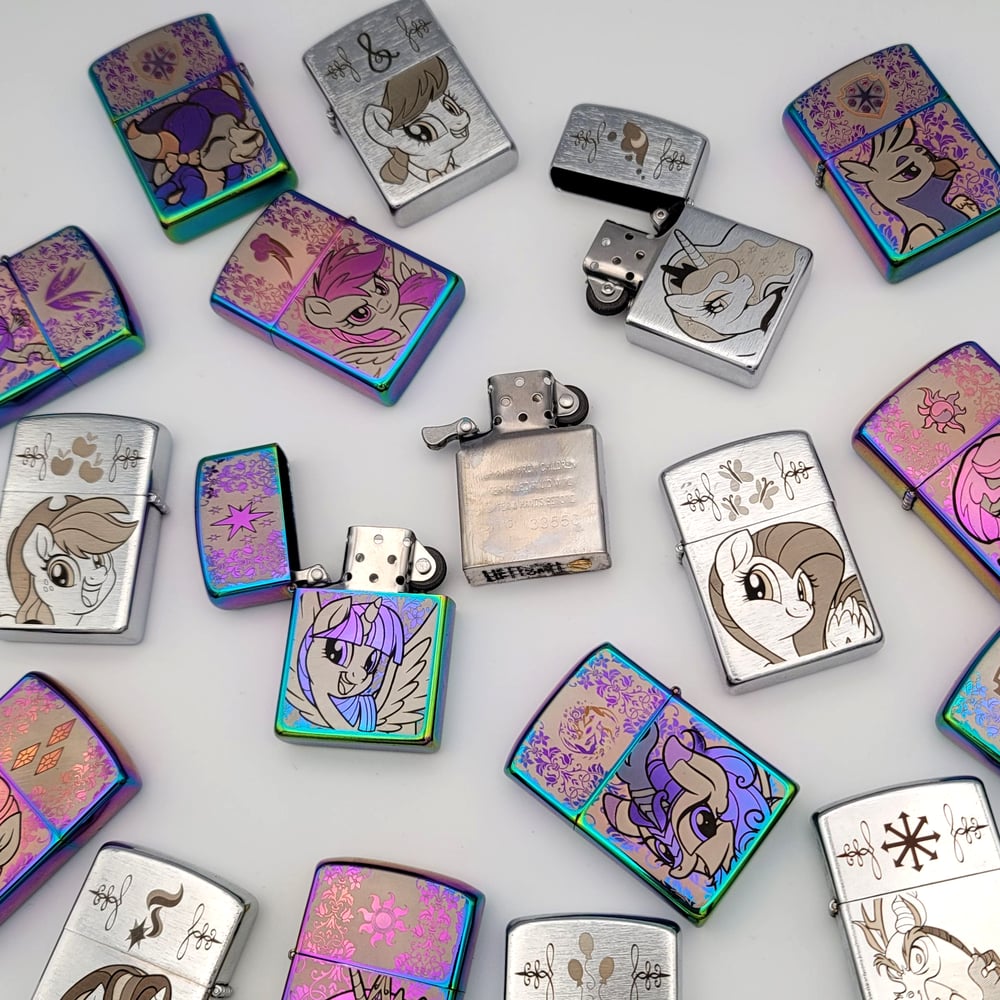 Laser engraved on both sides, these are not any sort of a name brand lighter, but are certainly compatible with the inserts and refills made for most lighters of this type!